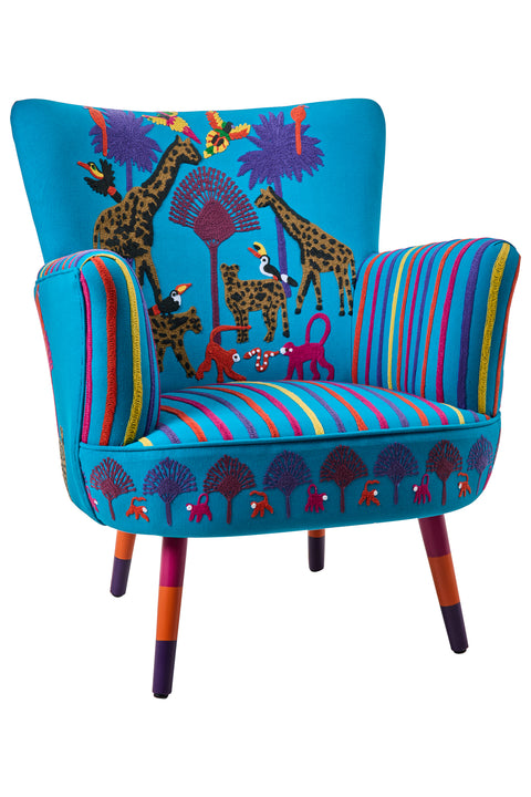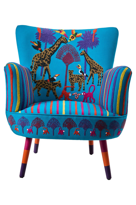 Cleopatra - Poltrona Ricamata Figure Di Jungle Animal