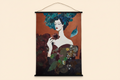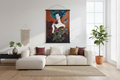 Allo - Lienzo impreso Mujer con hojas y flores, fondo naranja, 115 x 153 cm