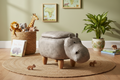 Puf tapizado en polipiel, madera - hipopótamo blanco con contenedor