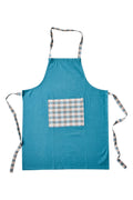 BORMIO - GREMBIULE AZZURRO CON TASCA E BORDI QUADRETTI