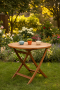 Il legno di teak indonesiano garantisce resistenza, durabilità e un calore naturale che valorizza ogni spazio esterno. Il design pieghevole lo rende pratico da riporre quando non serve, ottimizzando lo spazio disponibile. Le dimensioni rotonde da 90 cm sono perfette per pranzi e cene all'aperto con famiglia e amici, mentre il peso robusto assicura stabilità. Ideale per giardini, terrazzi e verande, questo tavolo trasforma ogni momento conviviale in un'esperienza di puro relax, ricordando di proteggerlo dagli agenti atmosferici diretti per preservarne la bellezza nel tempo.