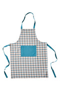 BORMIO - GREMBIULE QUADRETTI CON TASCA E LACCI AZZURRI TINTA UNI