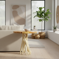 Il tavolino Craftsman in teak con legni assemblati è un capolavoro di artigianato che celebra la bellezza delle imperfezioni naturali. Ogni pezzo di legno racconta una storia, unito con maestria per creare un piano tondo unico e irripetibile. Con le sue gambe in teak massello e il design organico, questo tavolino diventa il cuore pulsante del vostro soggiorno, dove funzionalità e arte si incontrano.