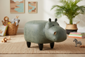 Pouffotto Imbottito In Fintapelle E Legno - Ippopotamo