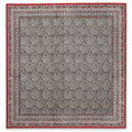 I toni del rosso intenso, bianco puro e marrone terra si intrecciano in un design paisley ricco di dettagli ornamentali: bordi decorativi multipli e pattern geometrici che creano una composizione armoniosa e sofisticata. Perfetto per chi cerca un tocco di calore e carattere nella propria casa.