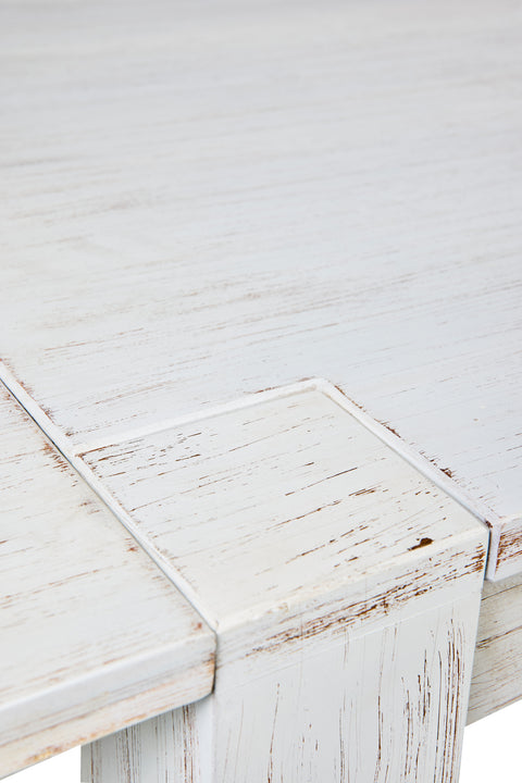 Tavolo da Pranzo Bianco Dipinto a Mano con Prolunghe a Scomparsa